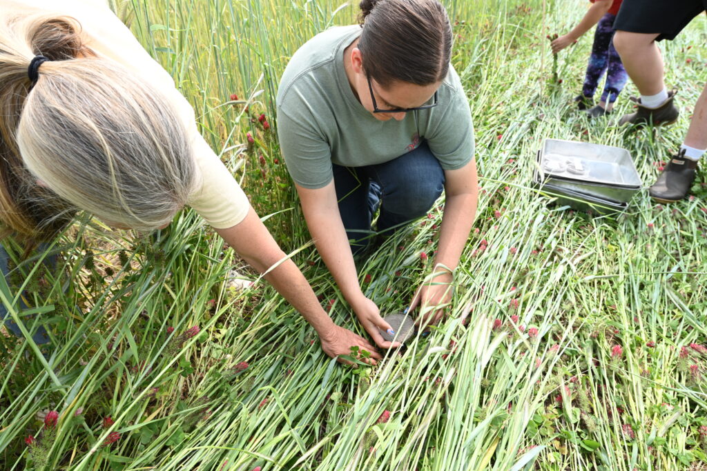 Choose cover crops that fit your cropping system. Farmers who grow small grains may choose a legume like crimson clover rather than hairy vetch because hairy vetch has hard seed and can volunteer in small grains, while crimson clover poses less risk of contaminating the harvested small grains. Mechanical termination using a roller-crimper without herbicide is only effective on a few species and must be done at the correct cover crop life cycle stage, or the cover crop may survive and produce seeds. If you are targeting timely cash crop planting in a conventional system, don’t plan to use roller-crimping as your sole cover crop termination method. Without the addition of herbicides, it is unlikely that you will terminate your cover crop without some seeds being produced, even if you roll-crimp at the optimum time.