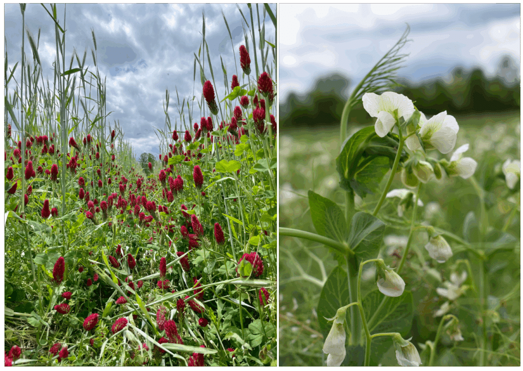 (See this farmer case study of a grower and this VT graduate student project for more information about mixing grasses and legumes for weed suppression and nitrogen credits.)
