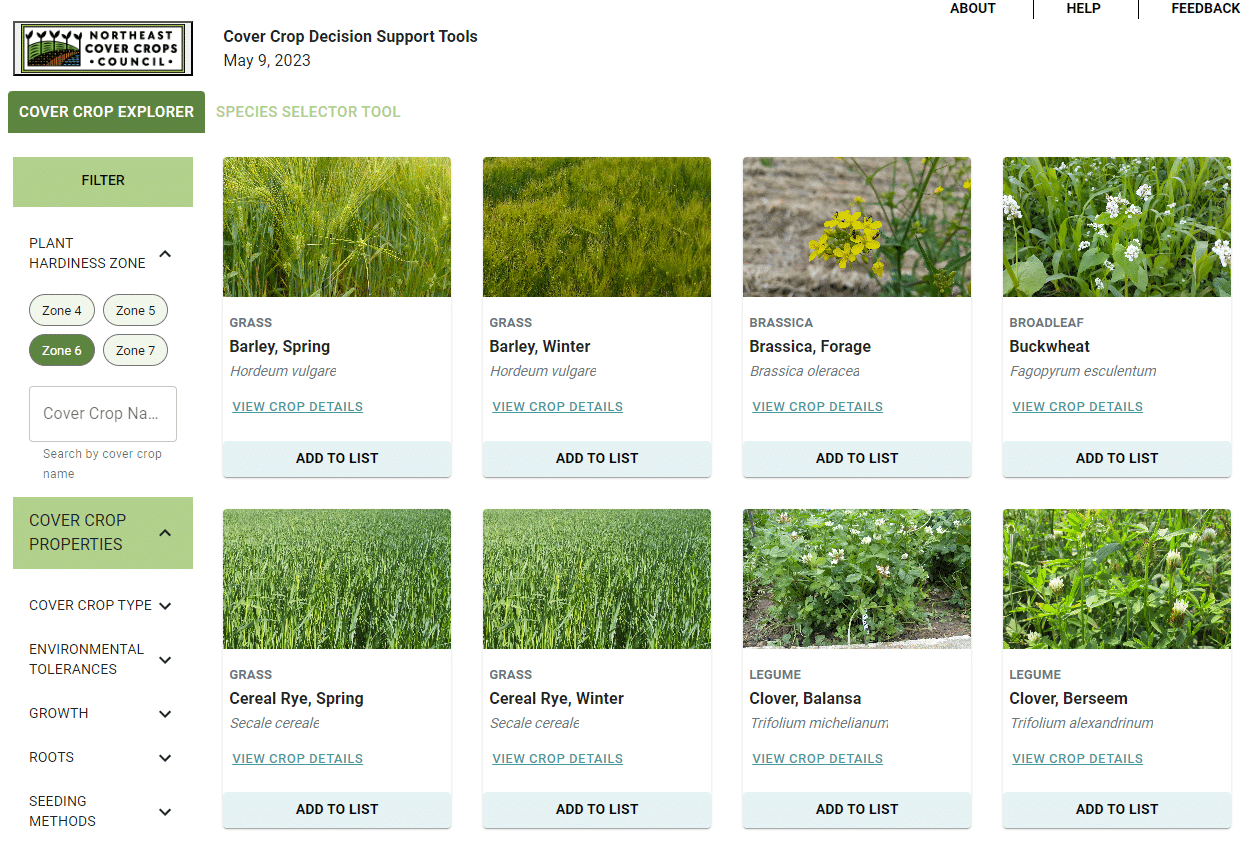 Precision Sustainable Agriculture, a public-private partnership that connects farmers with site-specific knowledge to help make better real-time decisions, has The Cover Crop Decision Support Tool to help users better understand the impact of incorporating cover crop species or mixtures into their farm.