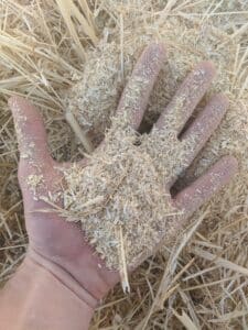 Mills process only the chaff portion of harvested material, which is what comes off the sieves (also known as the shoe). The straw fraction is not processed. This design is effective because research shows that weed seeds are found predominantly in the chaff. For example, GROW network testing shows less than 5% of weed seeds escape control by exiting the combine in the straw material (see Section 2. How well do seed impact mills kill weed seeds?).