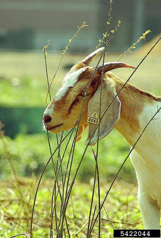 Animals such as sheet and cattle have been used to management brush and undesirable vegetation. Use in cash crops is impractical due to their inability to only eat weeds and not eat or damage crop plants (Photo credit: James Miller, USDA Forest Service, Bugwood.org).
